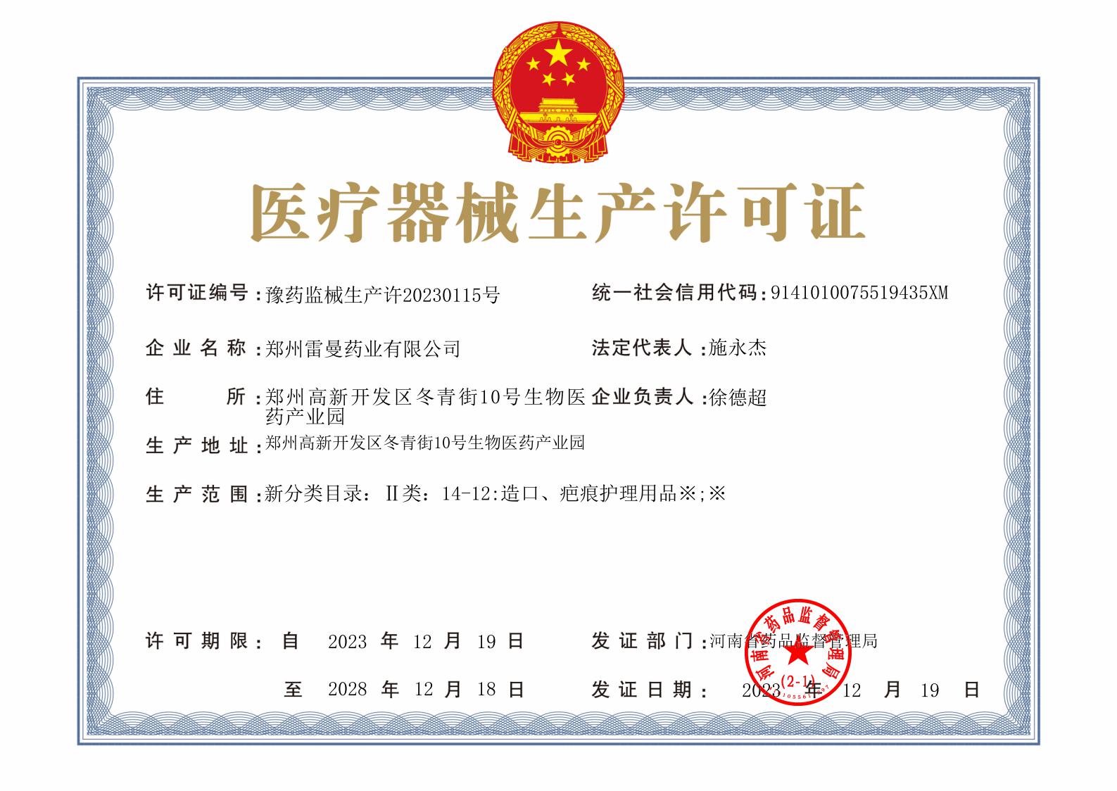 醫療器械生產(chǎn)許可證