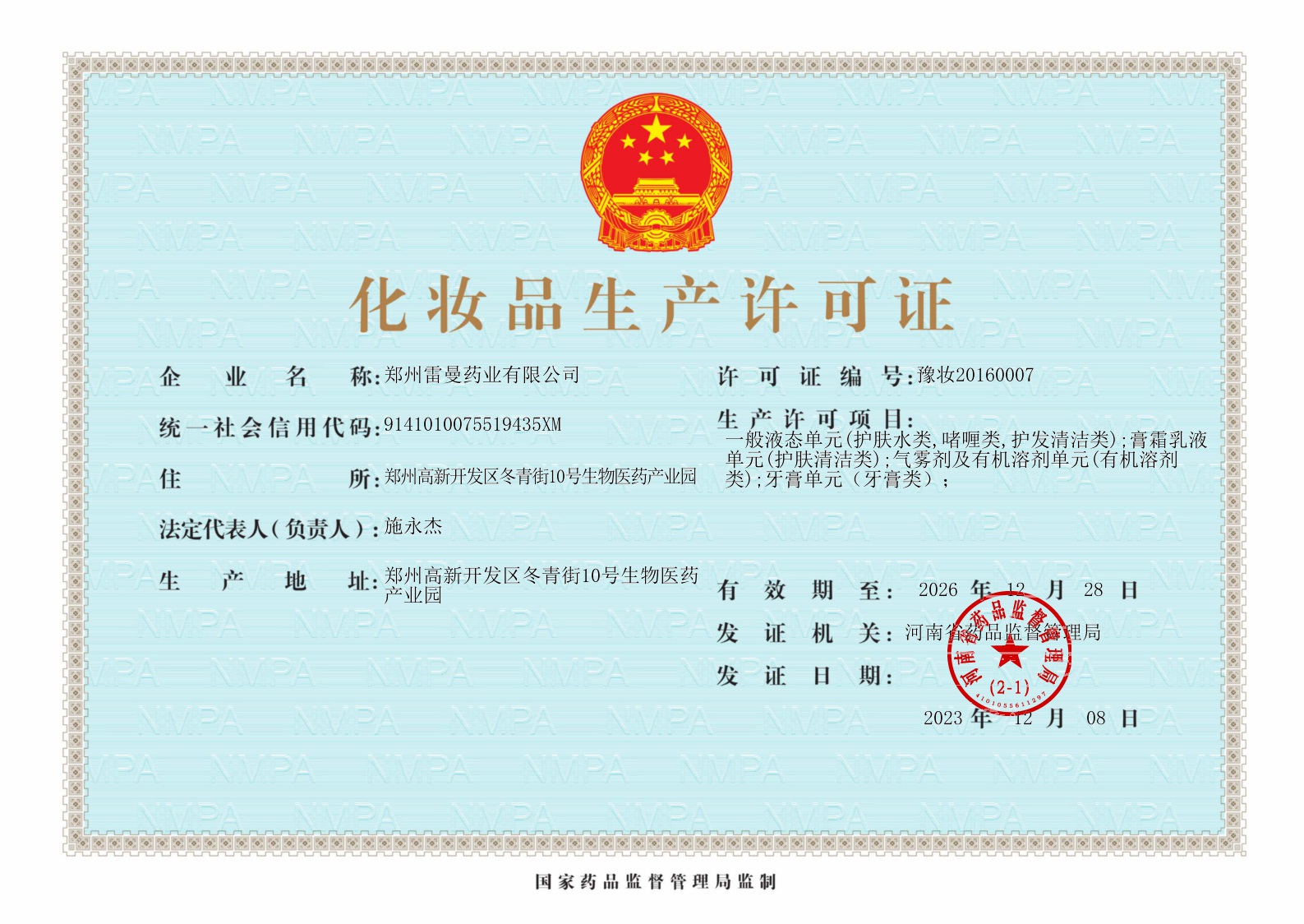 化妝品生產(chǎn)許可證