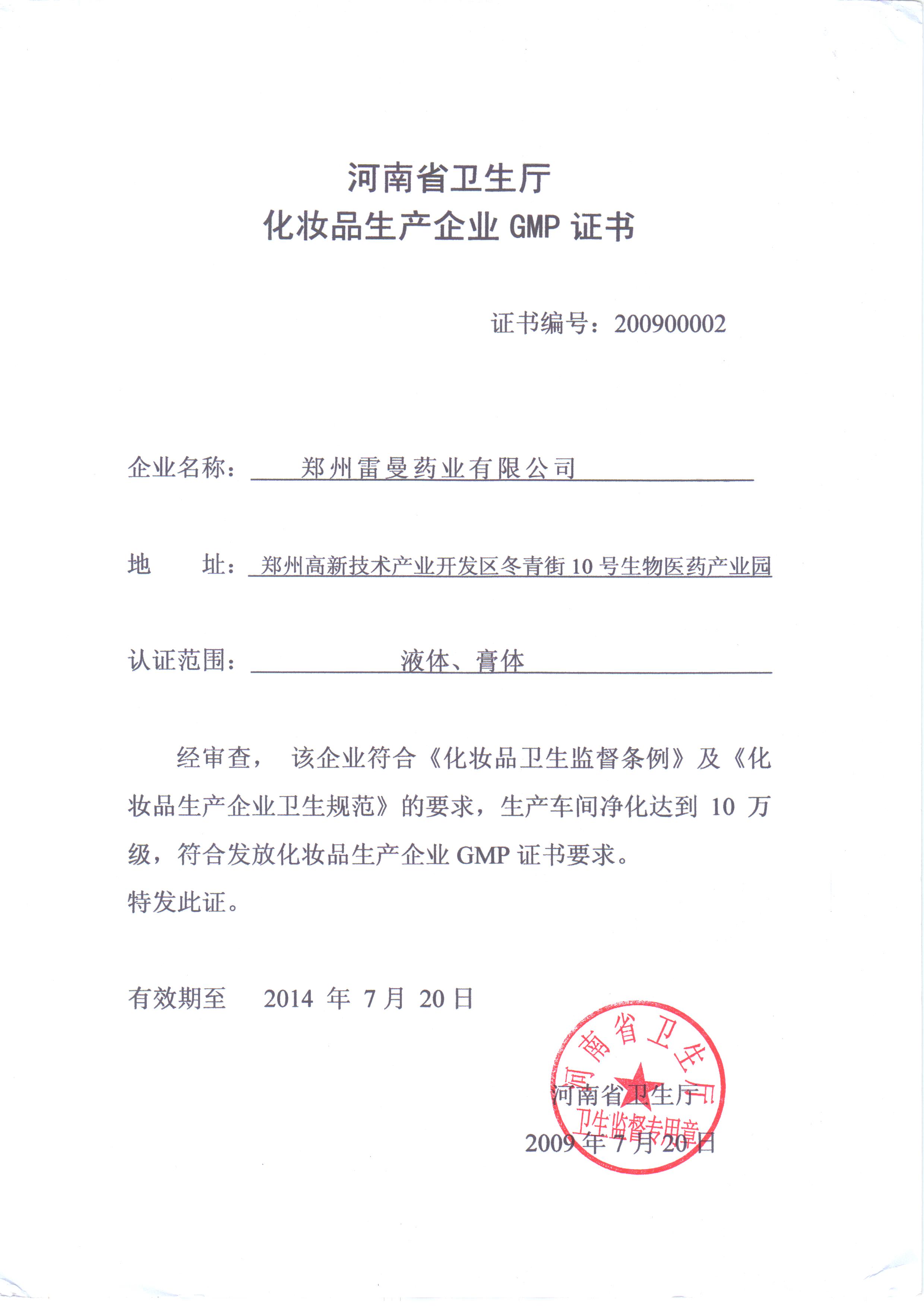 化妝品生產(chǎn)企業(yè)GMP證書(shū)